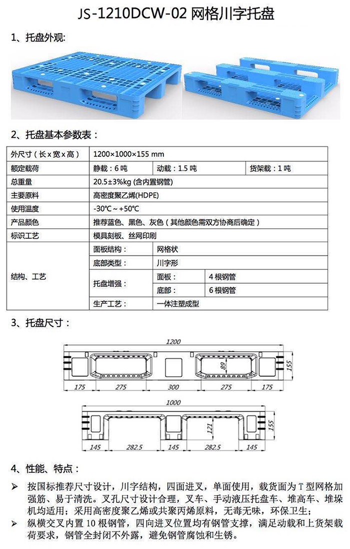 2、塑料托盤產(chǎn)品尺寸誤差正負(fù)2%,重量誤差正負(fù)3%,均屬于企業(yè)標(biāo)準(zhǔn)允許的范圍。