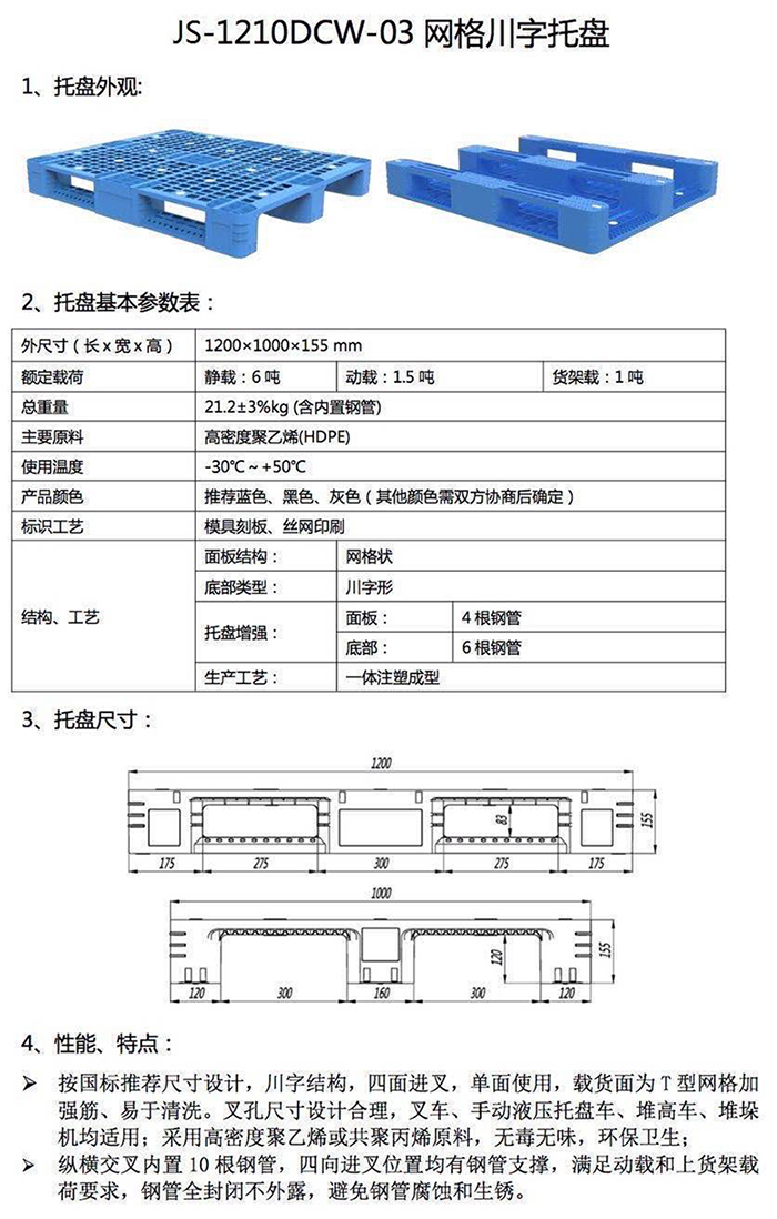 2、塑料托盤產(chǎn)品尺寸誤差正負(fù)2%,重量誤差正負(fù)3%,均屬于企業(yè)標(biāo)準(zhǔn)允許的范圍。