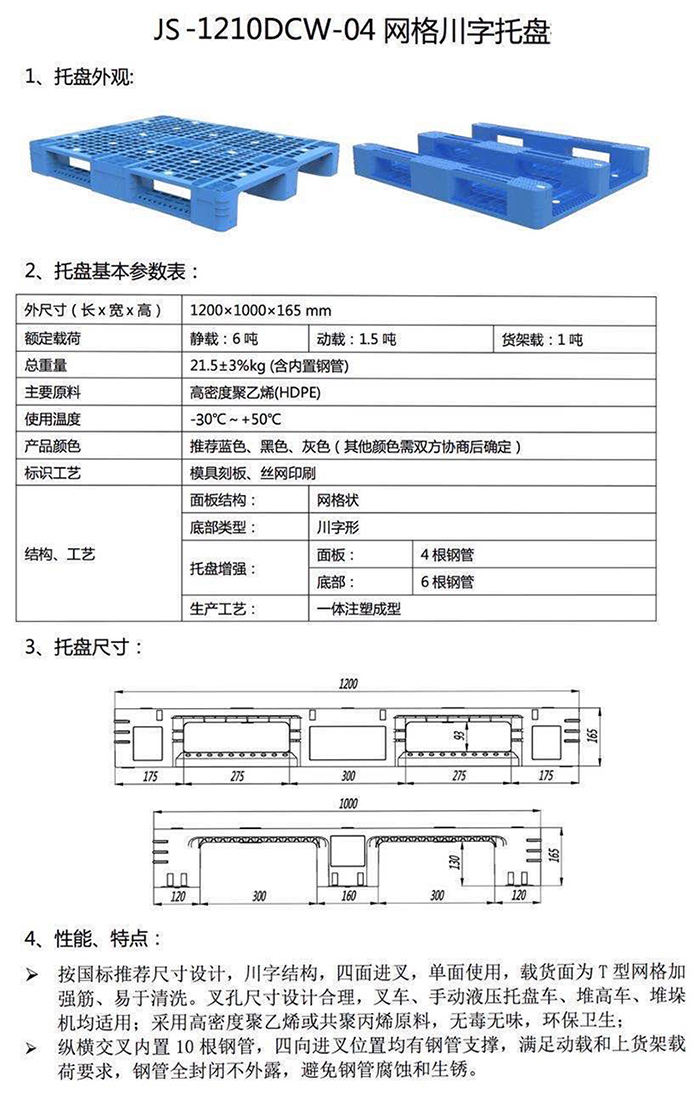 2、塑料托盤產品尺寸誤差正負2%,重量誤差正負3%,均屬于企業標準允許的范圍。